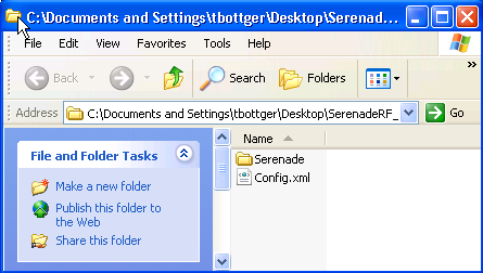 Open the SerenadeRF_PocketBrowser folder that was unzipped. This folder contains: • Serenade folder. • Config.xml file. |
