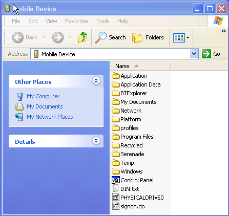 In Microsoft ActiveSync, select File > Explore to advance to the Mobile Device explorer window and keep this folder open since it will be used in the next configuration step. |