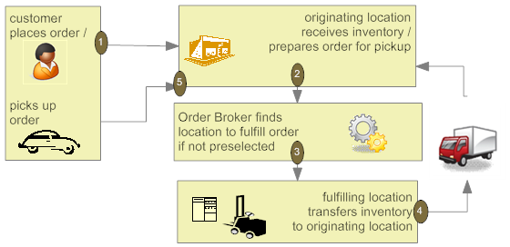 The Order Broker integration supports a business process in which only the originating store cancels a retail pickup or delivery order, since the customer is not necessarily aware that the distribution center can be involved in order fulfillment. As a result: