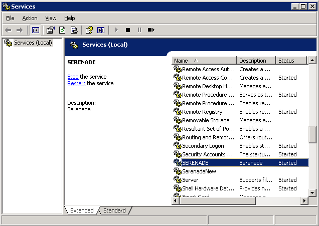 • Restart the SERENADE service; see Restarting the SERENADE Service, or