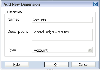 注意: | ディメンションの名前は後で変更できません。ディメンション名を変更する必要がある場合は、ディメンションをコピーして新規名前を指定する必要があります。次に、新規ディメンションをアプリケーションに追加し、古いディメンションに対する関連付けを除去します。必要に応じて、古い未使用のディメンションを削除できます。ただし、連結アプリケーションとPlanningアプリケーションでは、デプロイされたアプリケーションで別の名前を参照するために、別名またはディメンション名を変更できます。ディメンション別名の設定を参照してください。 |