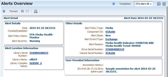 L'écran Alerts Overview affiche les attributs liés à une ou plusieurs alertes.