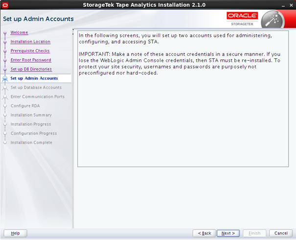 Enregistrez ces identifiants de connexion en toute sécurité ; si vous lez perdez, vous ne pourrez plus vous connecter à la console d'administration WebLogic et STA devra être réinstallé.Afin de protéger la sécurité de votre site, les noms d'utilisateurs et les mots de passe ne sont, à dessein, ni préconfigurés ni codés.