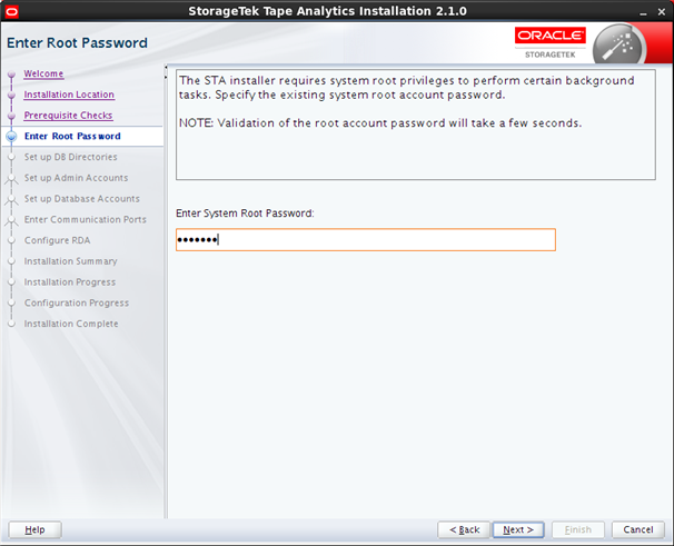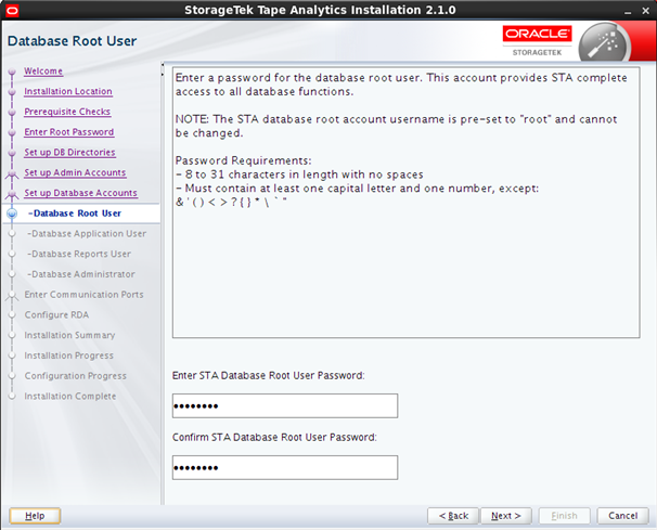 Saisissez le mot de passe que vous souhaitez affecter à l'utilisateur root de la base de données STA. La valeur saisie est masquée.