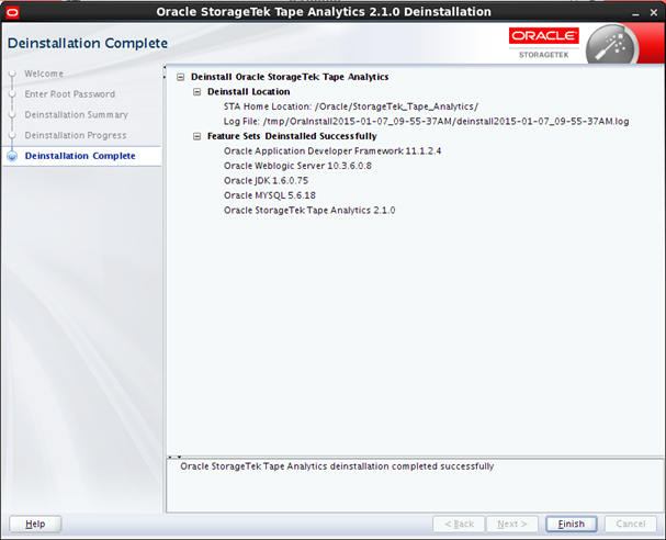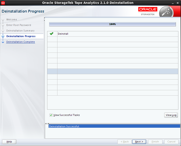 Lorsque la désinstallation se termine, le message "Deinstallation Successful" apparait dans le volet Message. Cliquez sur Next ou Finish pour accéder à l'écran final.