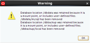 Si l'un des emplacements de la base de données est un point de montage sur le serveur STA, le message suivant s'affiche, indiquant que le point de montage a été conservé. Cliquez sur OK pour fermer le message.