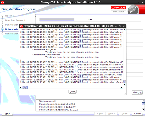Cliquez pour afficher le journal de désinstallation dans une fenêtre séparée. La copie d'écran Figure A-5 en est un exemple. Cliquez sur Close pour fermer la fenêtre du journal.
