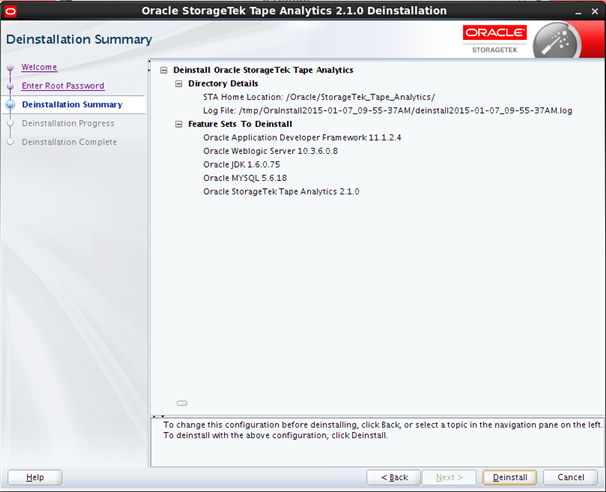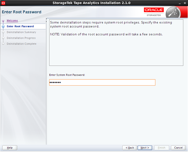 Le programme de désinstallation de STA requiert l'accès root Linux pour effectuer les tâches de désinstallation.