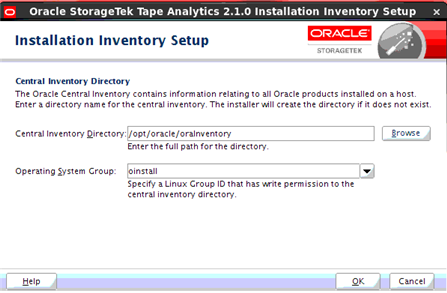 Cet écran fait partie de Oracle Universal Installer. En suivant les pratiques recommandées pour inscrire l'emplacement de l'inventaire central Oracle, cet écran apparaitra uniquement lors de votre première installation de STA sur ce serveur. Les installations ultérieures trouveront automatiquement le répertoire sans avoir à vous le demander. Pour plus d'informations, reportez-vous à la section Inscrivez l'emplacement de l'inventaire central Oracle.
