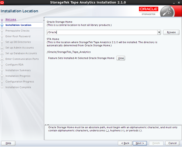 Il est impossible d'installer STA sur une version précédemment installée. Pour vérifier que STA n'est pas déjà installé dans un emplacement précis, vous pouvez entrer un répertoire dans le champ Oracle Storage Home puis cliquer sur le bouton View.