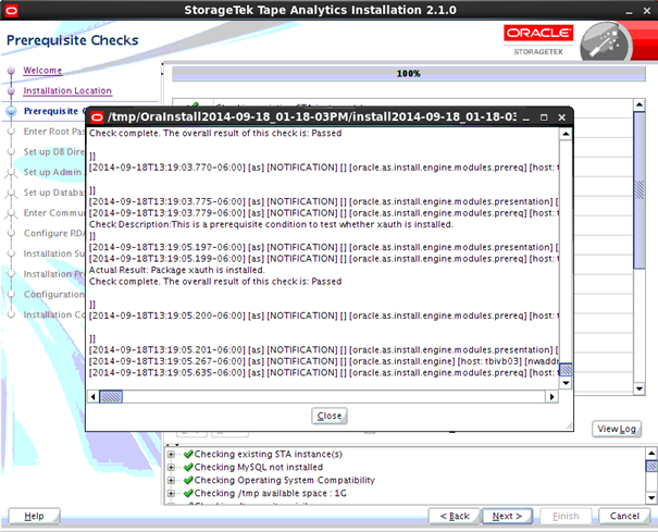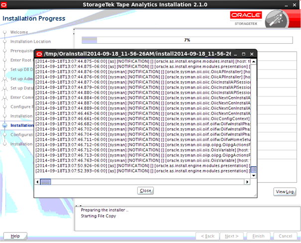 Cliquez pour afficher le journal d'installation dans une fenêtre séparée. La copie d'écran Figure A-5 en est un exemple. Cliquez sur Close pour fermer la fenêtre du journal.