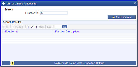 Choose the function ID of batch that you wish to run. The adjoining option list displays all batch processes available for the module.