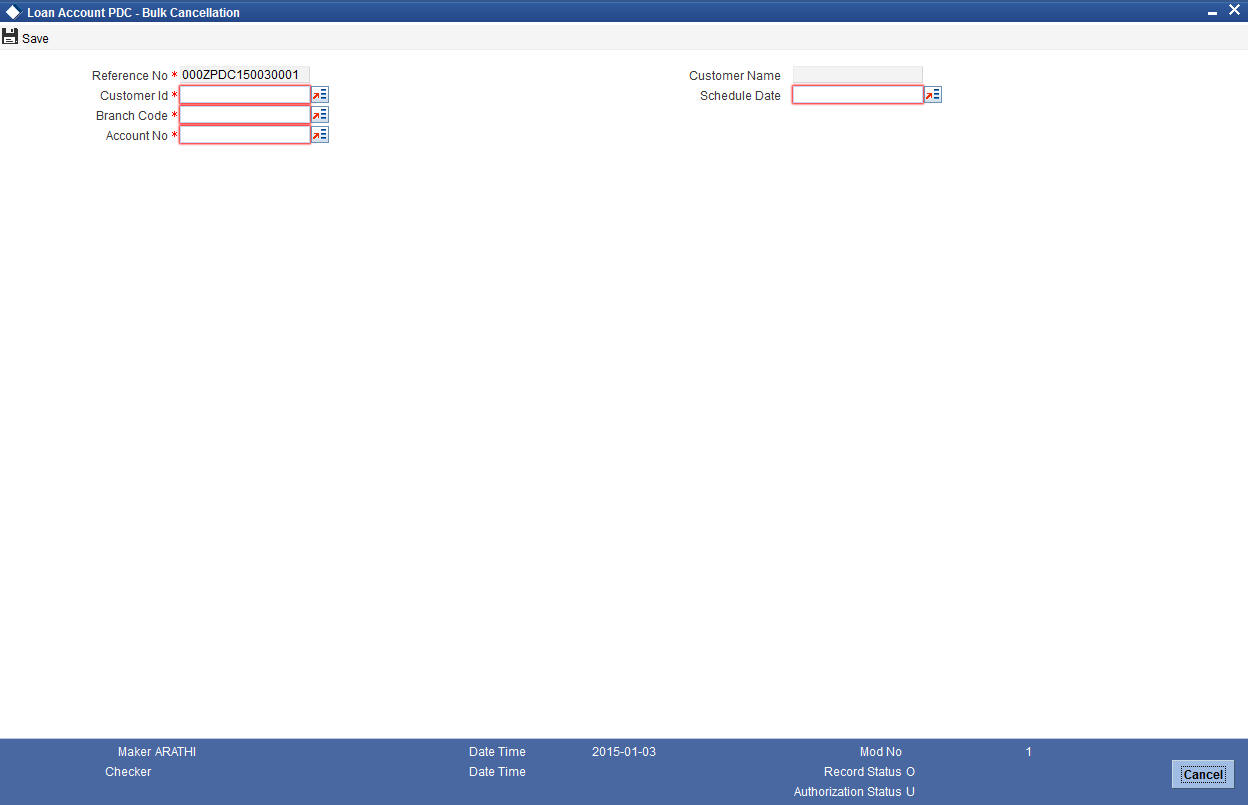 The system defaults this field. The drawer will be blacklisted based on the number of times the cheque gets returned. The cheque return count will be maintained at ‘Bank parameters’ screen. If the number of cheque returns is greater than or equal to the count then drawer will be marked as blacklisted.