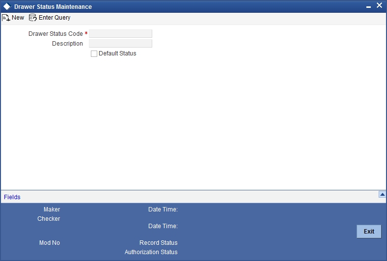 You can maintain the drawer status details using ‘Drawer Status Maintenance’ screen.