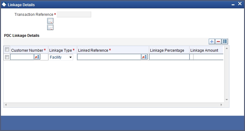 Specify the customer liability account/PDC settlement account. This adjoining option list displays all valid customer accounts maintained in the system. You can choose the appropriate one. This is a mandatory field.