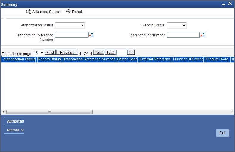 Click ‘Search’ button. The system identifies all records satisfying the specified criteria and displays the following details for each one of them.