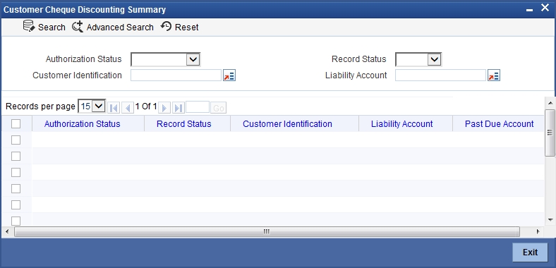 Here, you can query on customer cheque discounting details based on any one or all of the following criteria: