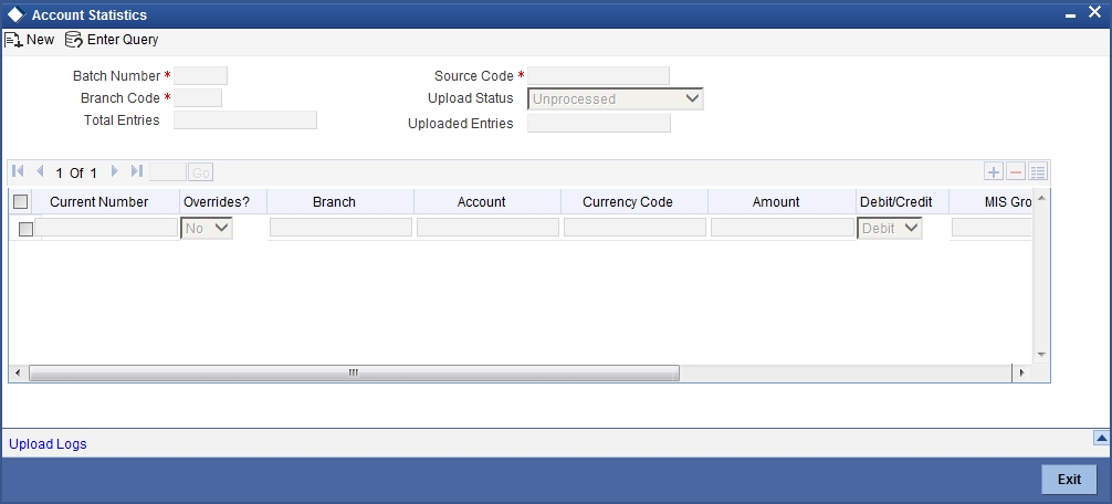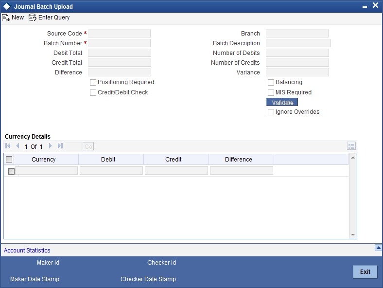 You can indicate whether the entries being uploaded should be balance at the branch level. If you have enabled this option and if the batch does not balance, a message is displayed at the end of the upload session.