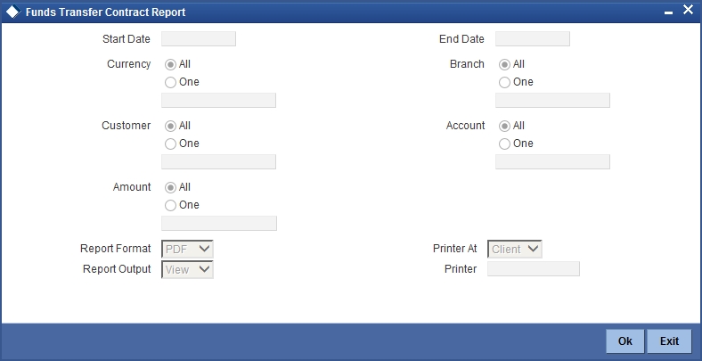 The report programs available under the Funds Transfer (FT) module are explained in this chapter. All activities that are performed by the FT module are recorded. The inputs you have made at different stages of the contract are pieced together and can be extracted in the form of meaningful reports as and when you may require them.