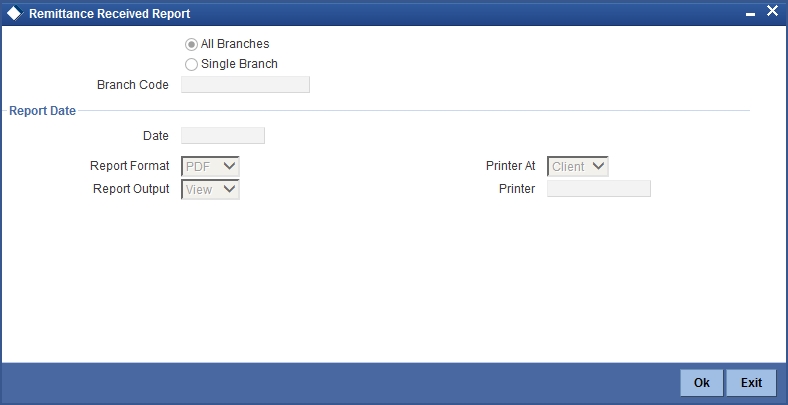 The parameters specified while generating the report are printed at the beginning of the report. Other content displayed in the Remittance Received Report is as follows: