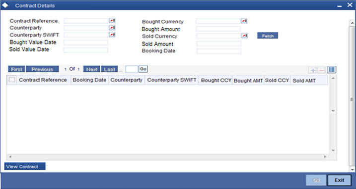 Click ‘Contract’ button in ‘Confirmation Message Matching’ screen to view the contract details.