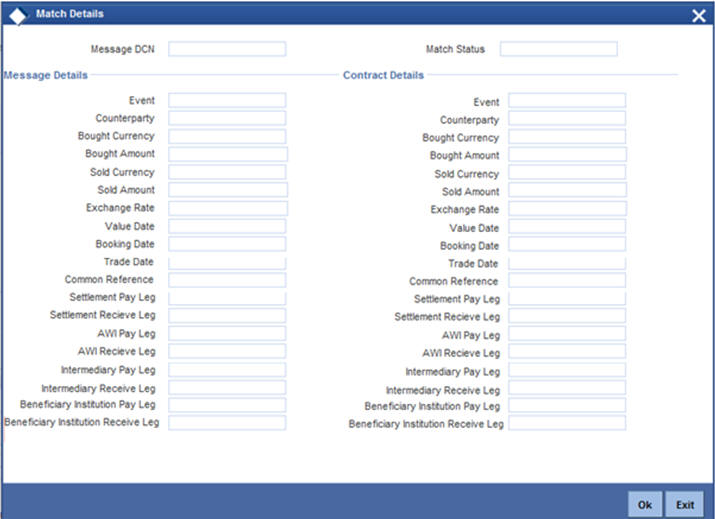 Click ‘View Match Details’ button in ‘Confirmation Message Matching’ screen to view match details based on the message and contract reference numbers, the following window is displayed: