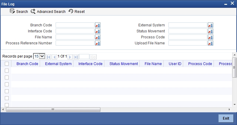 You can track the status of interface processing using the ‘File Log’ screen. You can invoke this screen by typing ‘GISFILOG’ in the field at the top right corner of the Application tool bar and clicking the adjoining arrow button.