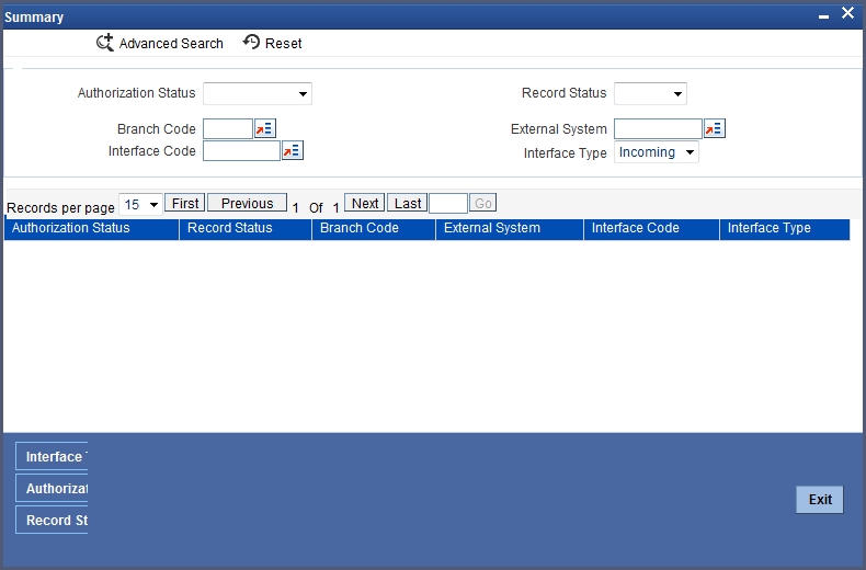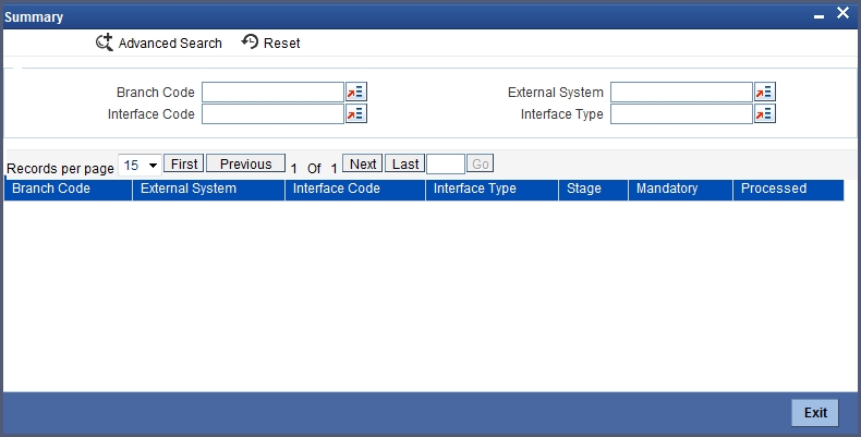 You can click ‘Search’ button to view the list the interfaces that should be processed on the current date. You can filter your search based on any of the following criteria: