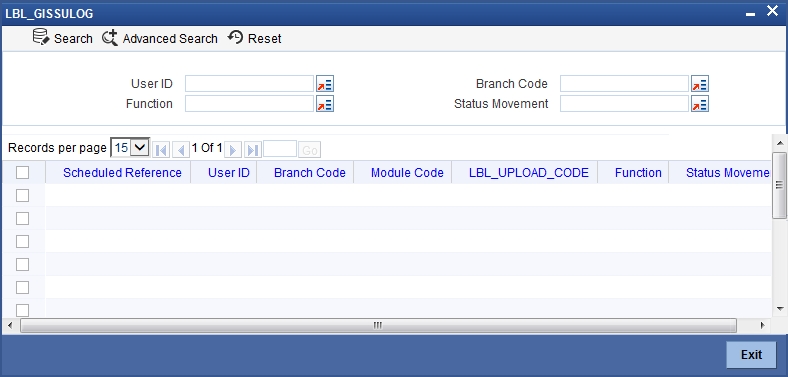 When you click ‘Search’ button the records matching the specified search criteria are displayed. For each record fetched by the system based on your query criteria, the following details are displayed: