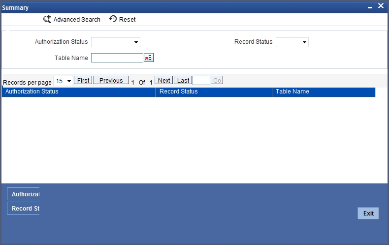 You can view AUDF details maintained in the system using ‘AUDF Summary’ screen. You can invoke this screen by typing ‘GISAUDFM’ in the field at the top right corner of the Application tool bar and clicking the adjoining arrow button.