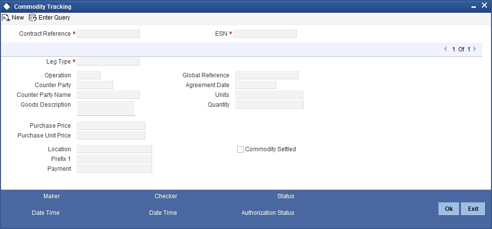 Commodity Tracking | Click this button to maintain principal and profit schedules for the in and out legs of the contract |