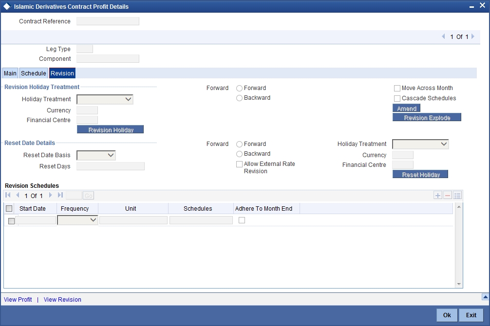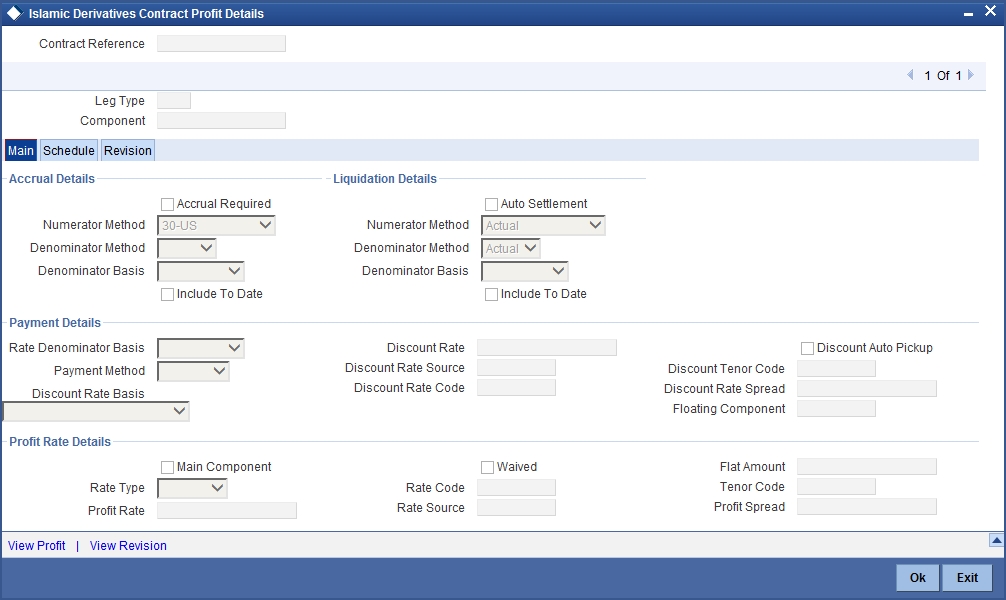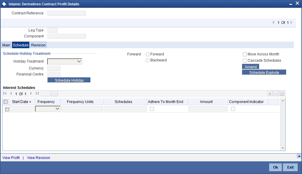 Interest | Click this button to indicate the profit schedule, profit revision schedule and accrual related details for every contract that you process | |||