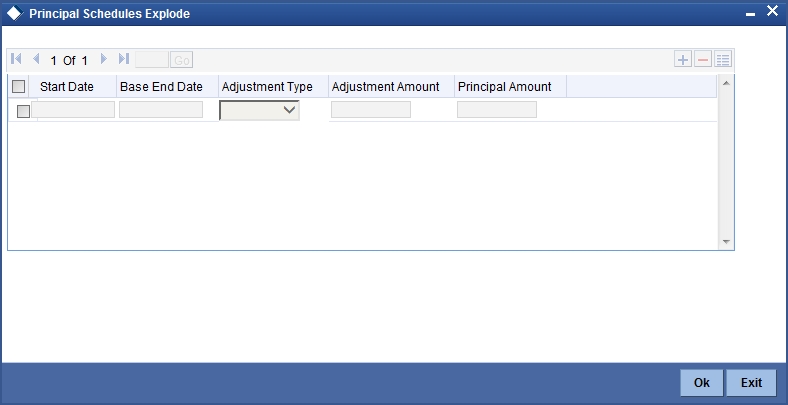 Principal | Click this button to invoke the principal schedule details for the in and out legs of the contract. This is possible only if you have specified so for the derivative type linked to the contract. | |||