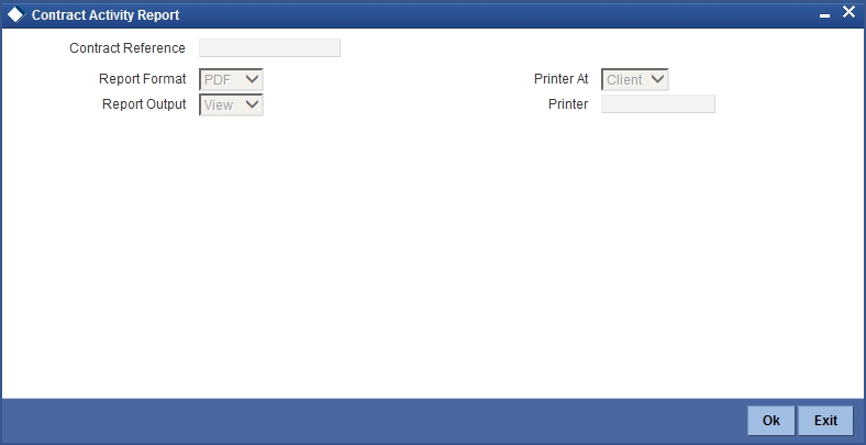 The parameters specified while generating the report are printed at the beginning of the report. Other content displayed in the Contract Activity Report is as follows:
