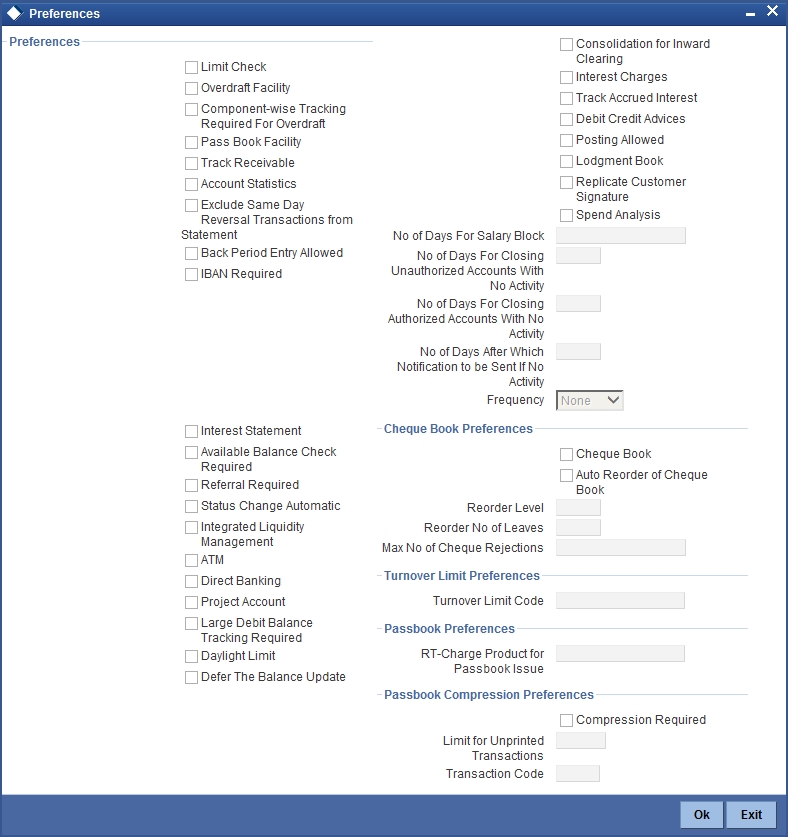 You can use the Account Class feature in Oracle FLEXCUBE to create a set of accounts which have the same characteristics. You can invoke the ‘Account Class Maintenance’ screen by typing ‘STDACCLS’ in the field at the top right corner of the Application tool bar and clicking on the adjoining arrow button. Click on the ‘Preferences’ button in the ‘Account Class Maintenance’ screen to invoke the ‘Preferences’ screen.