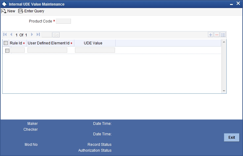 As you can recall, you can link rules to a product. A rule consists of System Data Elements and the User Data Elements. You can maintain the values for the UDEs defined for the rule in the ‘Internal UDE Value Maintenance’ screen. You can invoke this screen by typing ‘INDIUDVM’ in the field at the top right corner of the Application tool bar and clicking the adjoining arrow button.