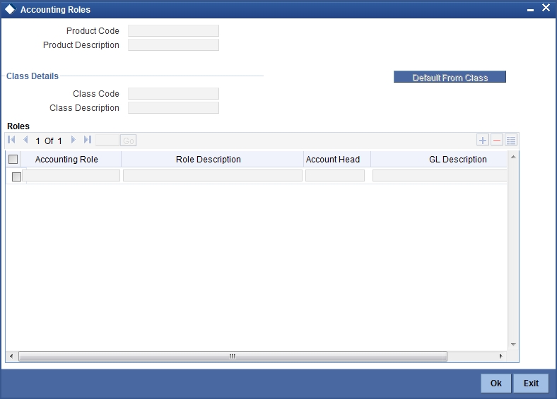 To invoke ‘Accounting Roles’ screen click ‘Accounting Roles’ button from the ‘Islamic Profit Distribution Product Maintenance Detailed’ screen