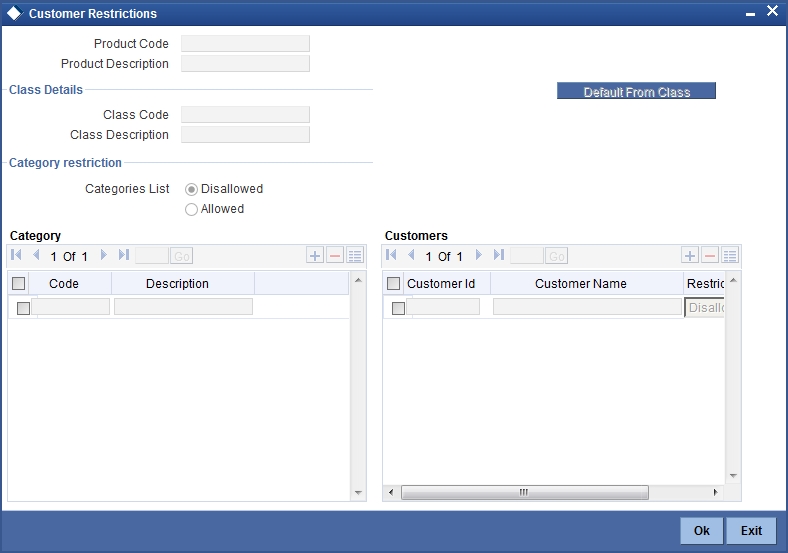 To invoke ‘Customer Restrictions’ screen, click ‘Customer’ button from the ‘Islamic Profit Distribution Product Maintenance Detailed’ screen.