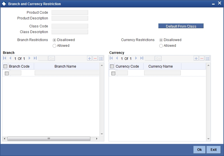 Specify a valid code of the product for which you are defining the Branch and Currency restrictions, from the adjoining option list.
