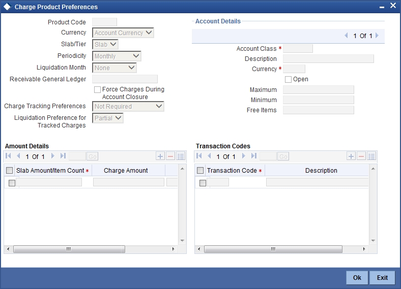 After you have specified the basis on which you would like to levy the charge, you have to specify the liquidation related details for the charge product, the account classes on which the product should be applied, the frequency of liquidation, the amount or rate of charge to be applied, amongst other details. You specify these details in the Product Preferences screen.
