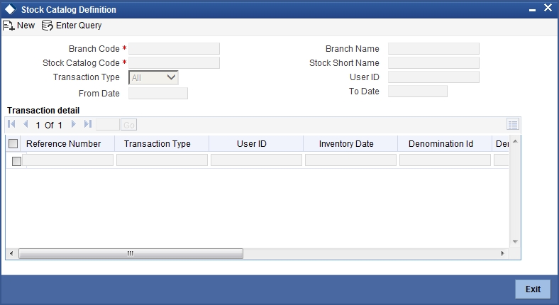 The query results will be for the requesting branch code. This function allows inquiry operation only. The respective branch’s current balance for each type of stock catalog will be displayed with the breakdown of denominations and value for each denomination.