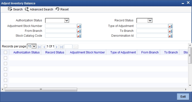You can use the ‘Adjust Inventory Balance Summary’ screen (IVSTXNAS) to query for Adjustment Stock records, by specifying the following parameters:
