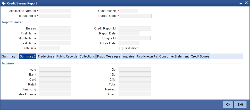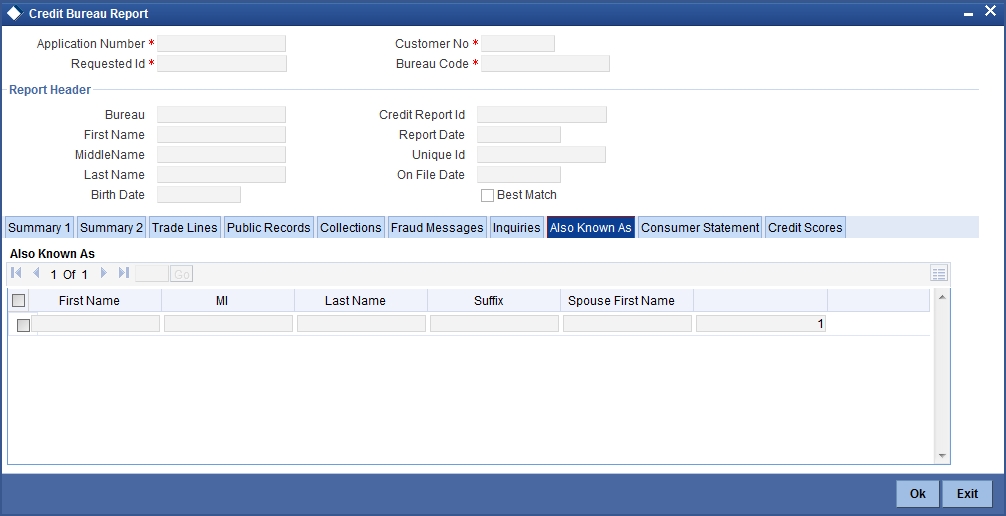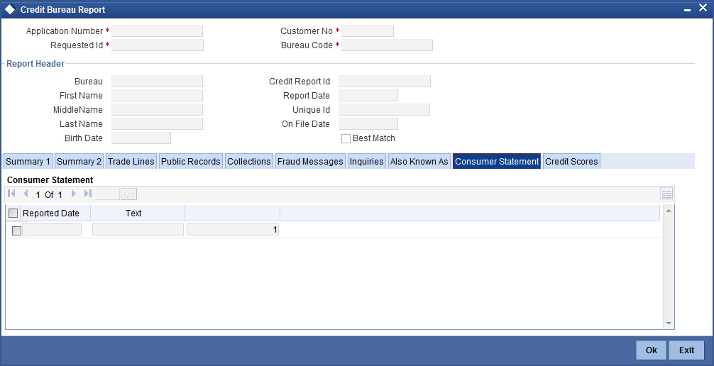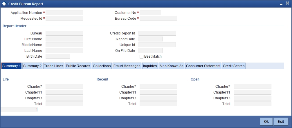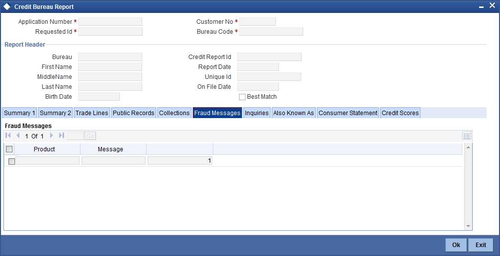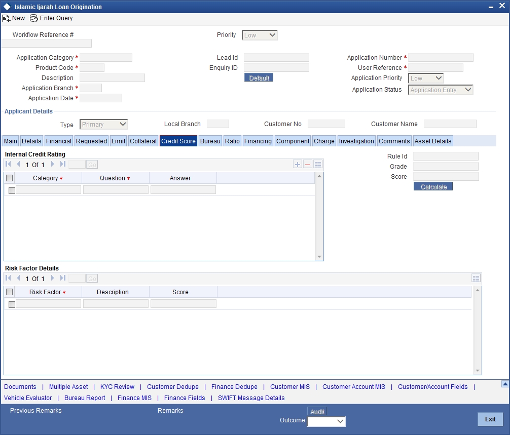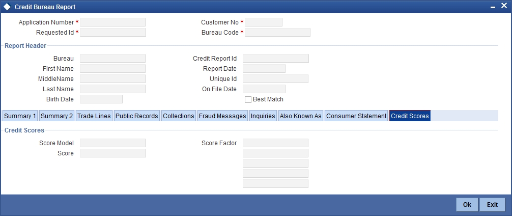 The system will invoke the external valuation agency for credit evaluation. You can view the details in the bureau tab. This includes the score assigned by the agency for the customer.