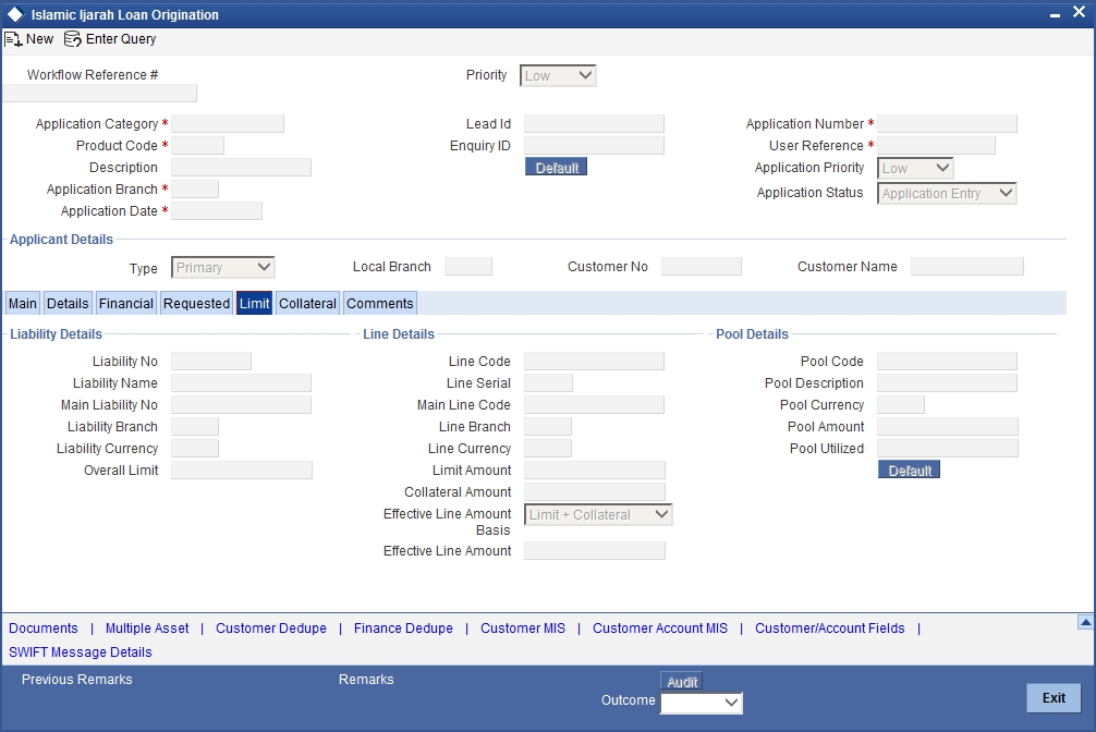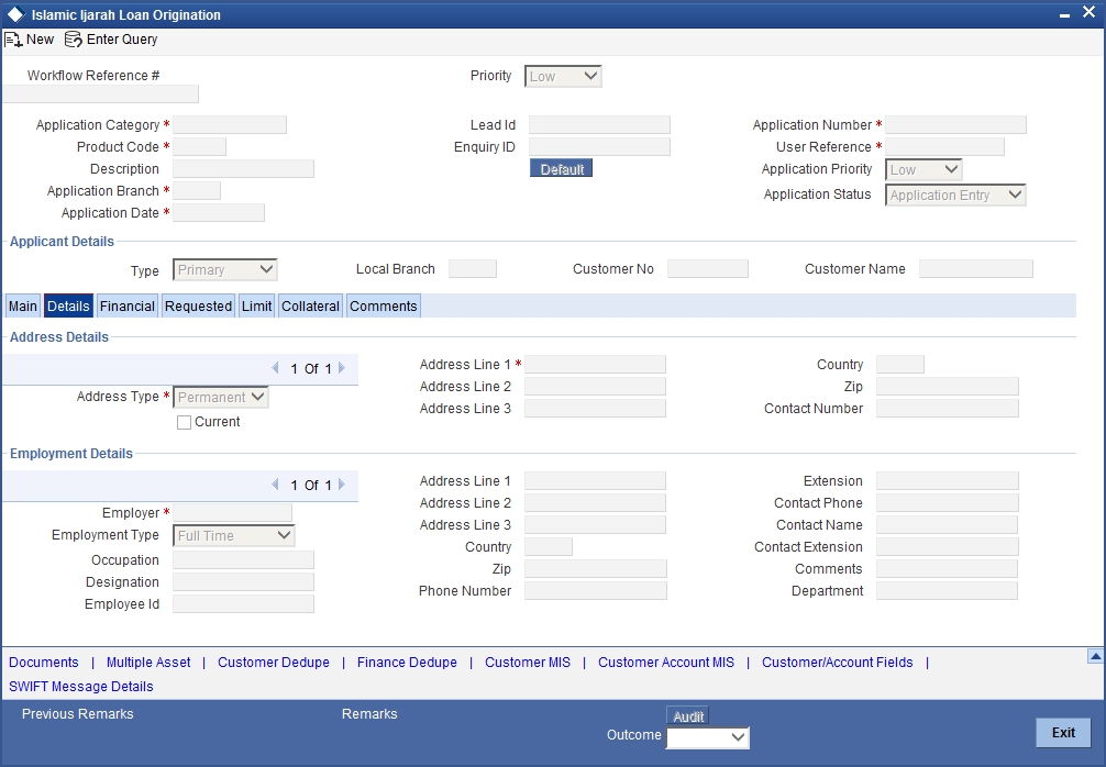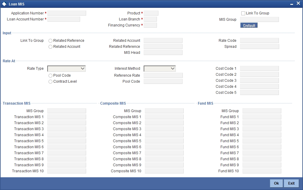 You can capture the Finance MIS details by clicking ‘Finance MIS’ button in ‘Ijarah Finance Underwriting’ screen.