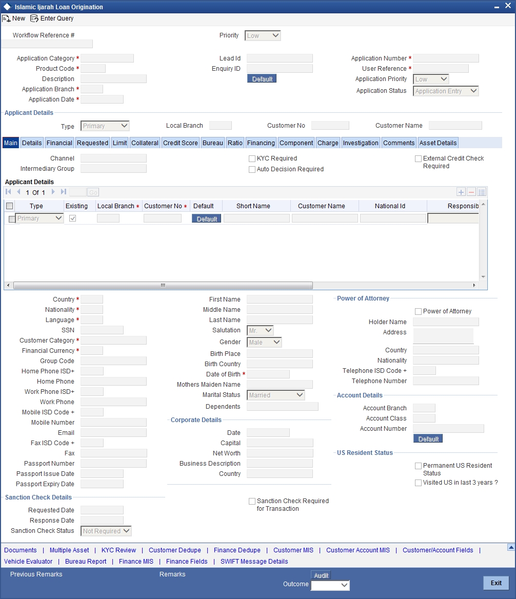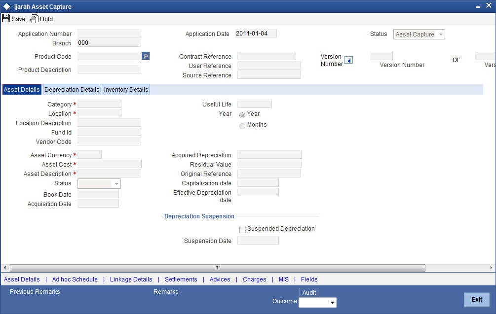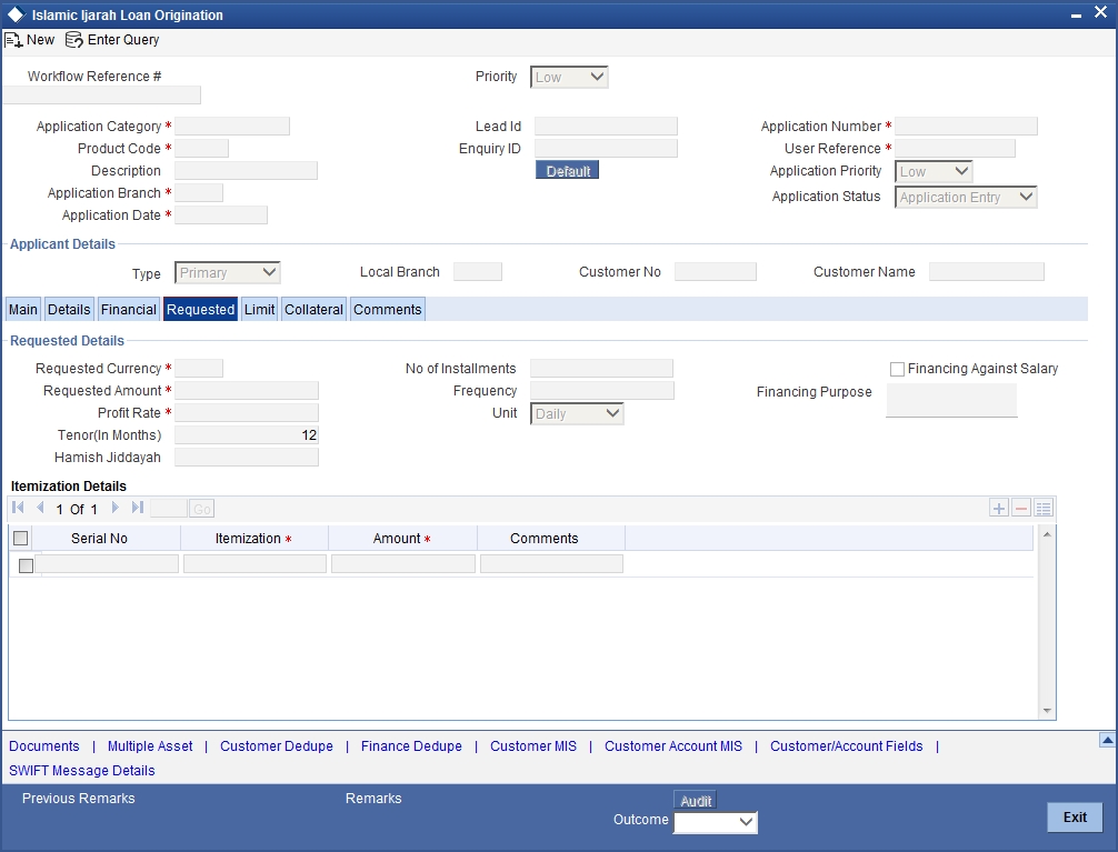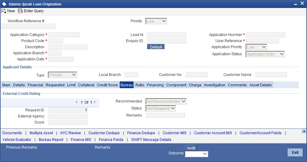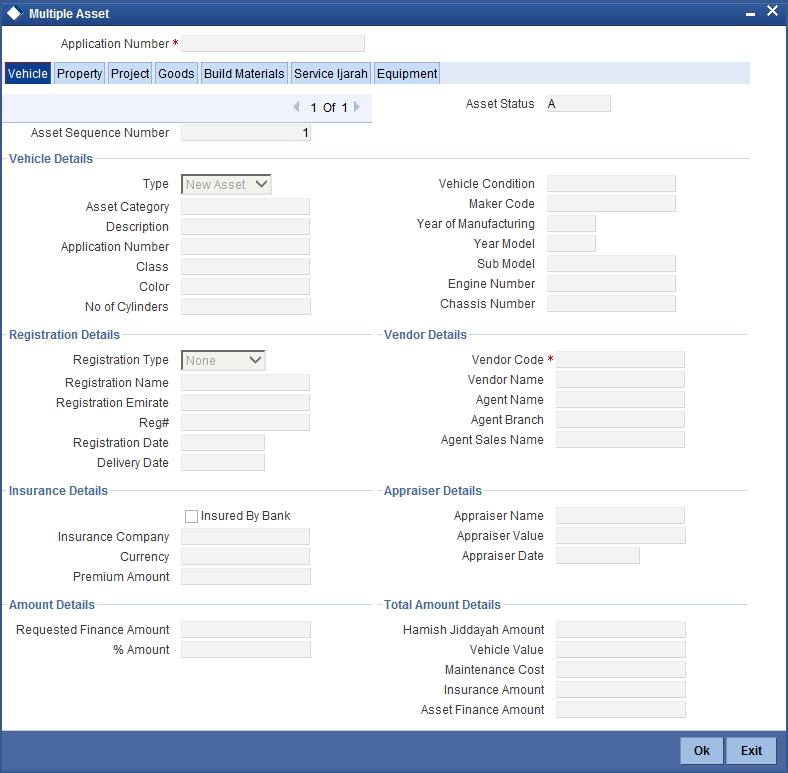 You can key-in the finance application details required in ‘Ijarah Application Approval’ screen