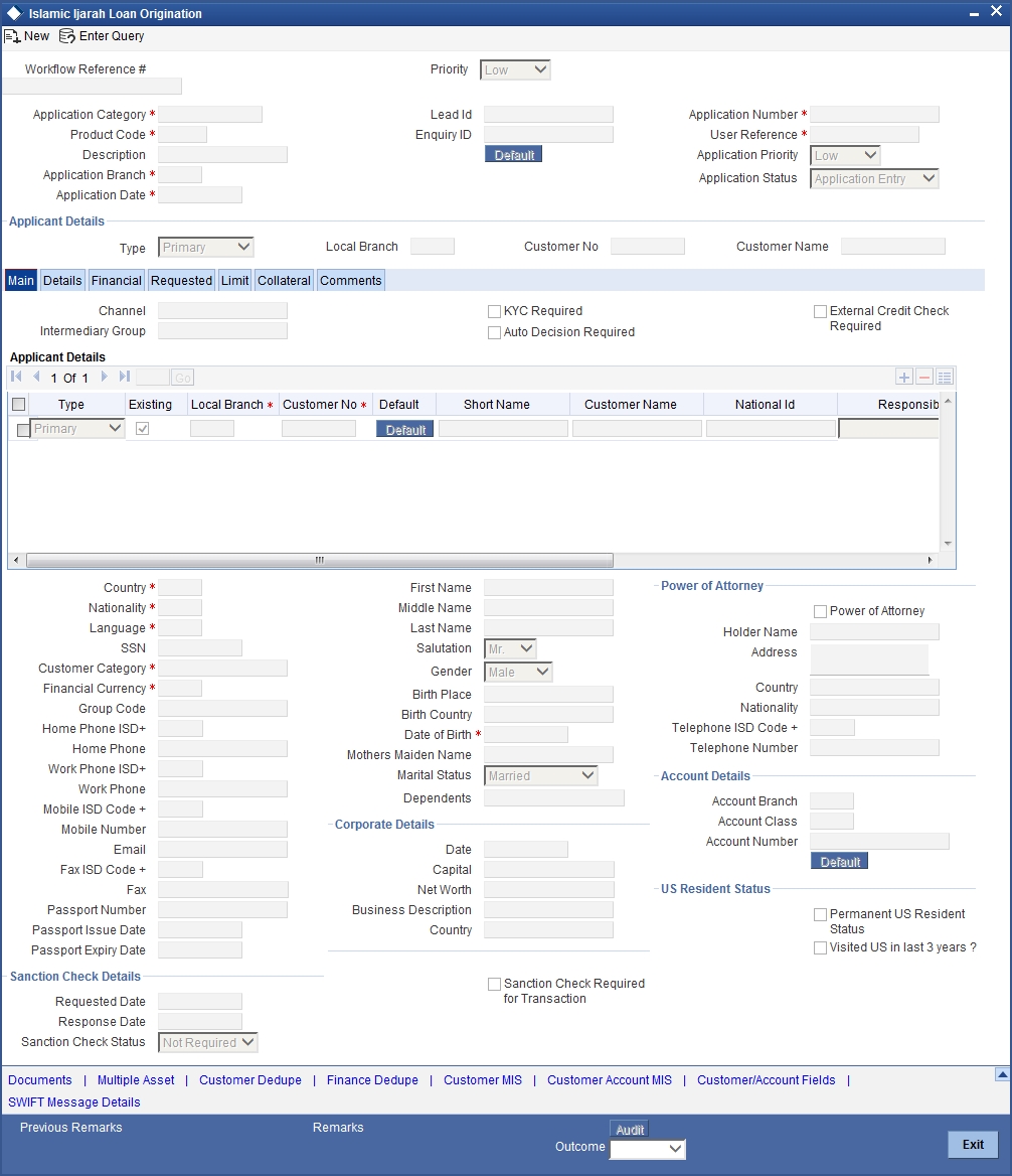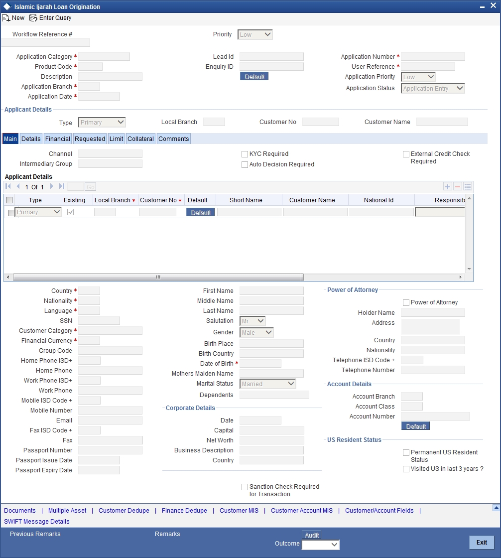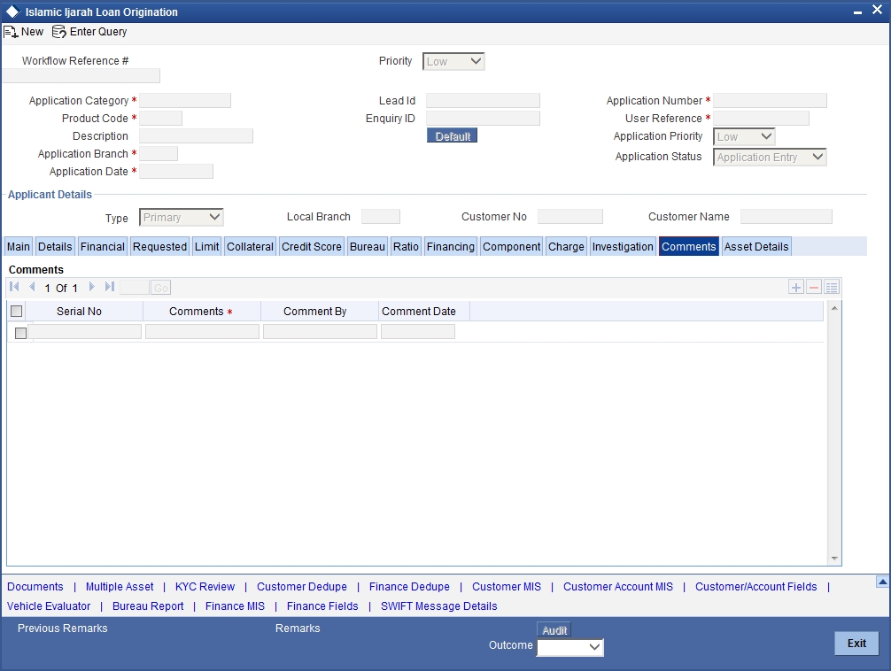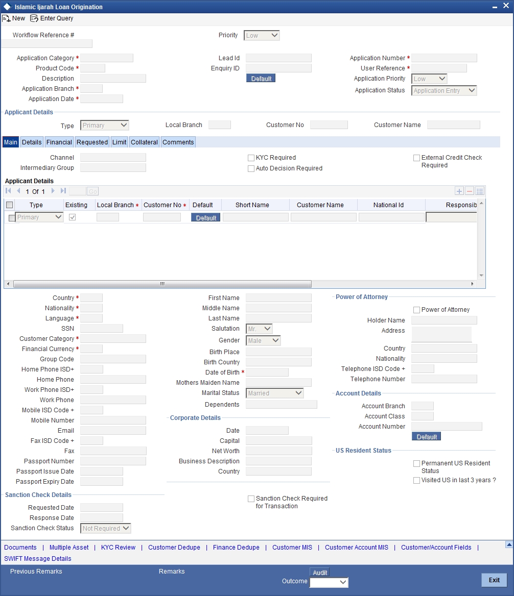 You can key-in the finance application details required in ‘Ijarah Application Approval’ screen