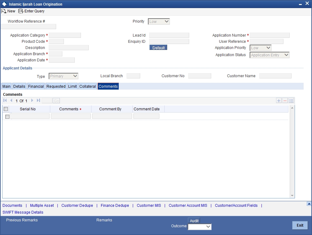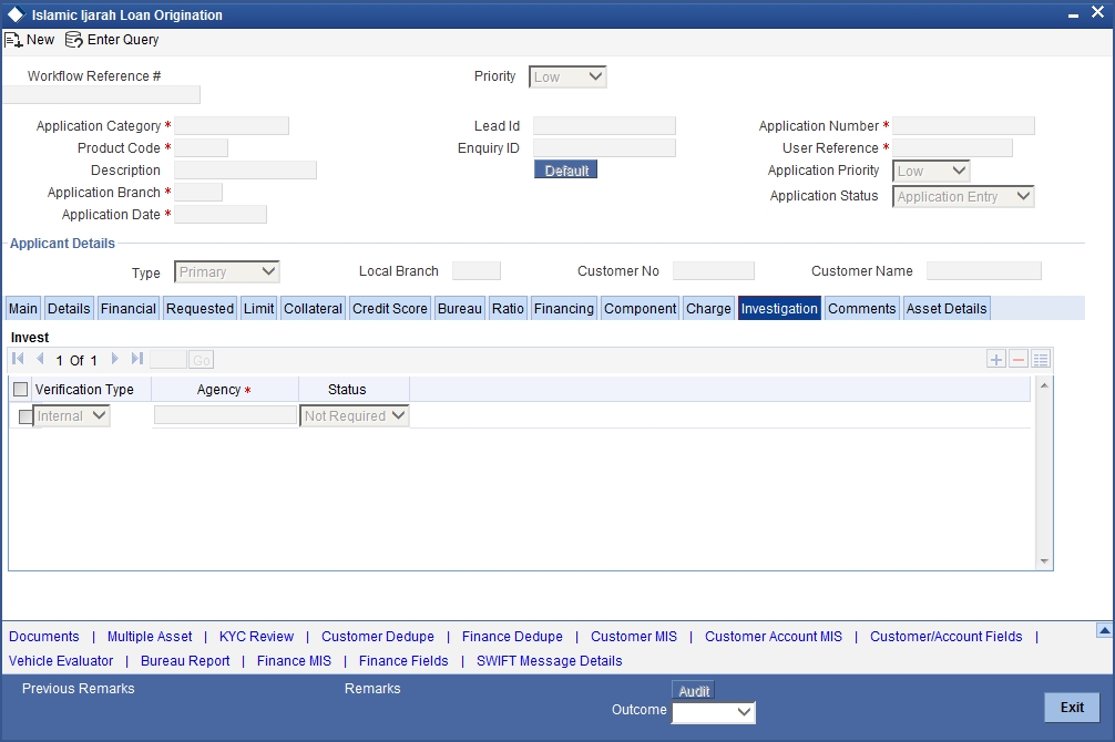 You can key-in the Finance application details required in ‘Ijarah Document Verification’ screen.