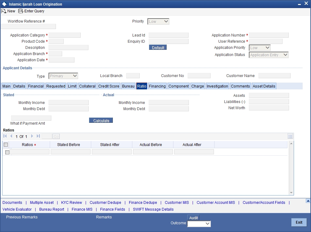 Click ‘Calculate Ratios’ button to calculate the asset/ liability ratios for the customer.