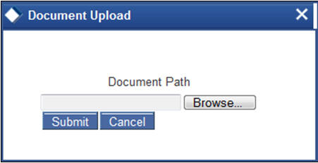 Click ‘Upload’ button to open the ‘Document Upload’ sub-screen. The ‘Document Upload’ sub-screen is displayed below: