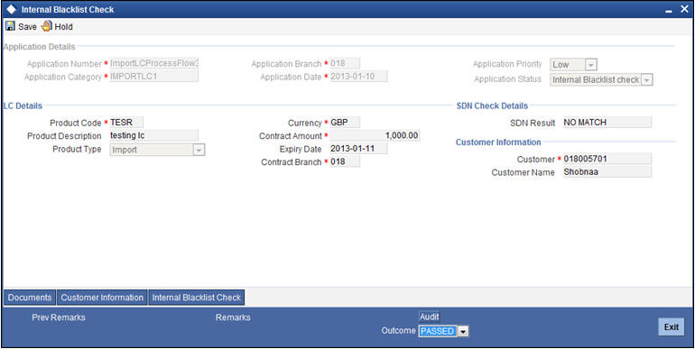 Click ‘Ok’ button. You will be taken back to the ‘Blacklist Checks’ screen. Click ‘Exit’ button to exit the screen. The task is then moved to the next activity.